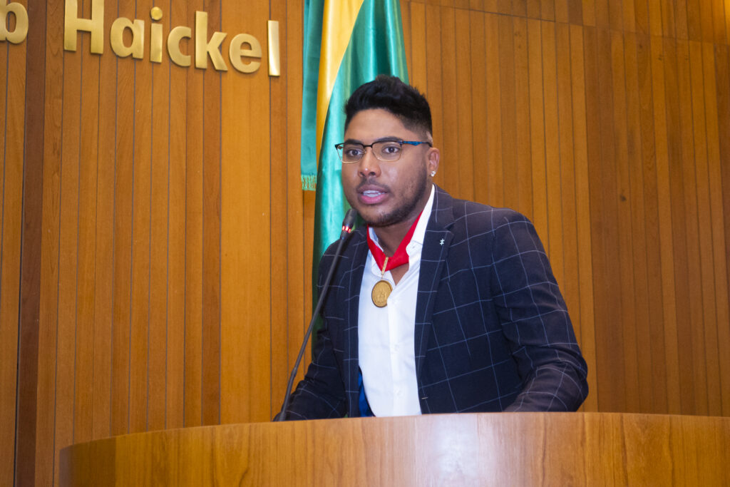 São Luís – Por iniciativa do deputado Adriano (PV), a Assembleia Legislativa do Maranhão realizou, nesta quinta-feira (11), no plenário Deputado Nagib Haickel, sessão especial para entrega da Medalha do Mérito Legislativo “João do Vale” ao cantor maranhense Bruno Patrício de Abreu Ferreira, conhecido nos palcos como Bruno Shinoda.