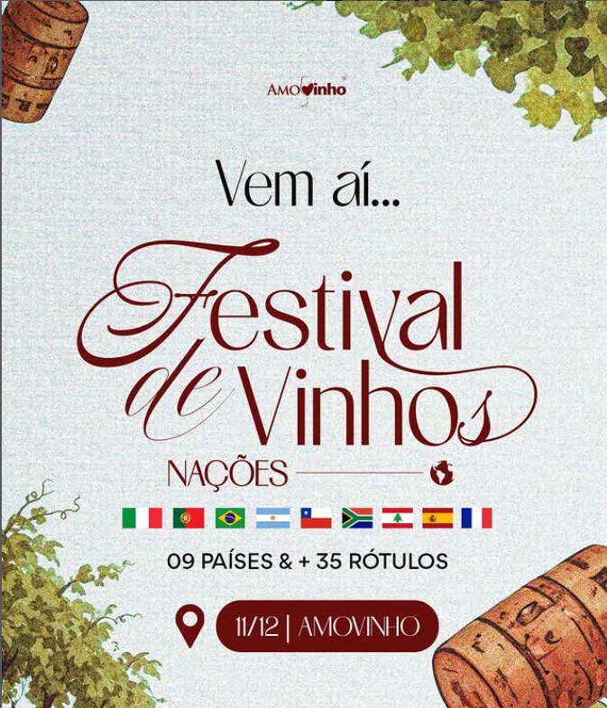 SÃO LUÍS – Vem aí o Festival de Vinhos Nações. O evento será realizado no dia 11 de dezembro, na AmoVinho Bistrô & Adega, no Parque Shalon. Quem prestigiar, terá a oportunidade de explorar o mundo taça por taça. Serão nove países homenageados, mais de 35 rótulos e muitas descobertas. O festival também vai destacar o cardápio diversificado da casa, com um toque de elegância e sofisticação.