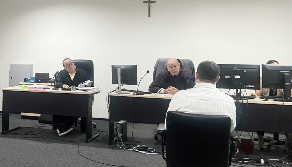 Durante a sessão de júri, nesta quinta-feira (26), foram ouvidas as esposas da vítima e do acusado e mais três testemunhas, além de interrogado o réu. No depoimento, o denunciado disse que efetuou o disparo de arma de fogo para conter a vítima e também porque populares cercaram seu carro.