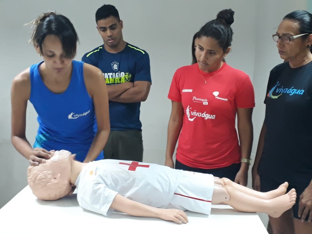 Desde o dia 1° deste mês, a Academia Viva Água realiza a campanha de prevenção de afogamentos. Entre as atividades, destaque para o treinamento Sopro de Vida, ministrado pela professora Denise Araújo para professores da academia. O objetivo do treinamento é repassar informações teóricas e práticas referentes a atendimento de primeiros socorros em caso de asfixia.