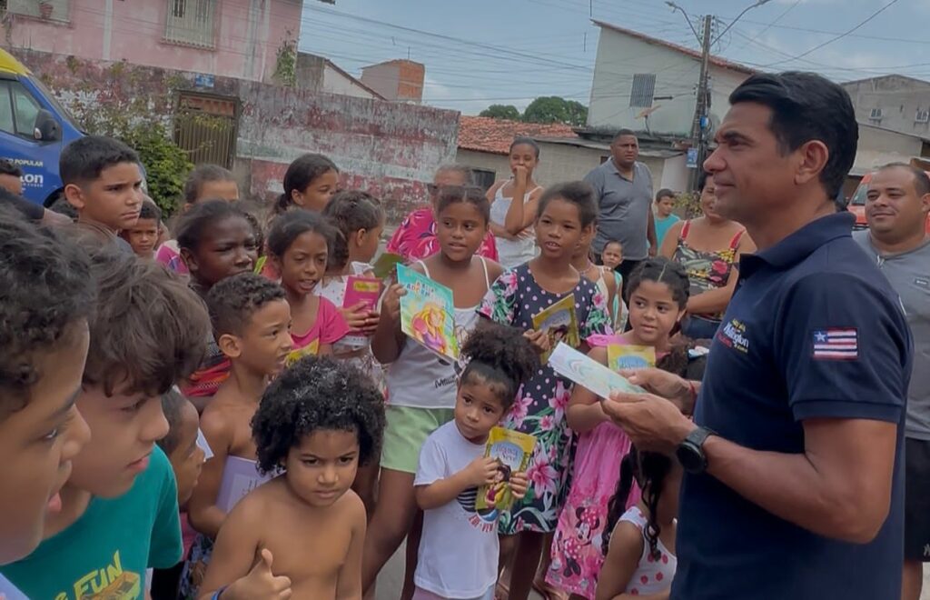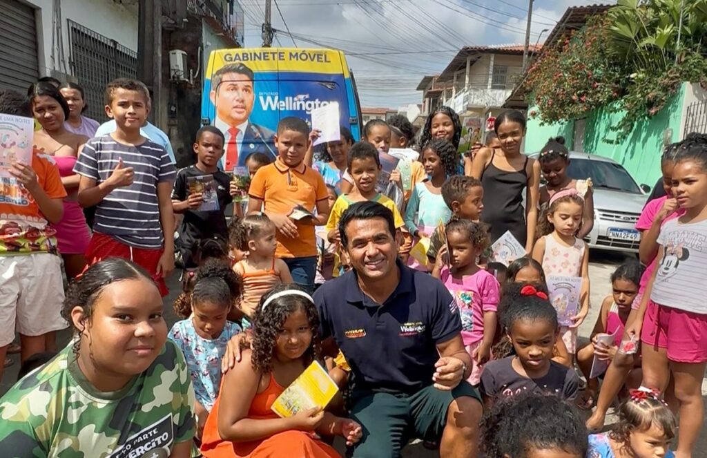 O deputado estadual Wellington do Curso fez a alegria da garotada com distribuição de livros no bairro de São Luís