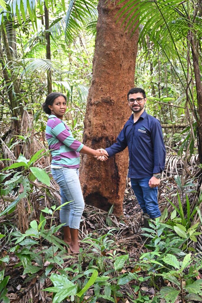A presidente da Associação Comunitária do povoado de Segurado, Silvanira dos Santos Araújo, defende a urgência na criação da Reserva. Na foto, ela com o coordenador de ESG da Shipping Protection Paulo Renato Lemos