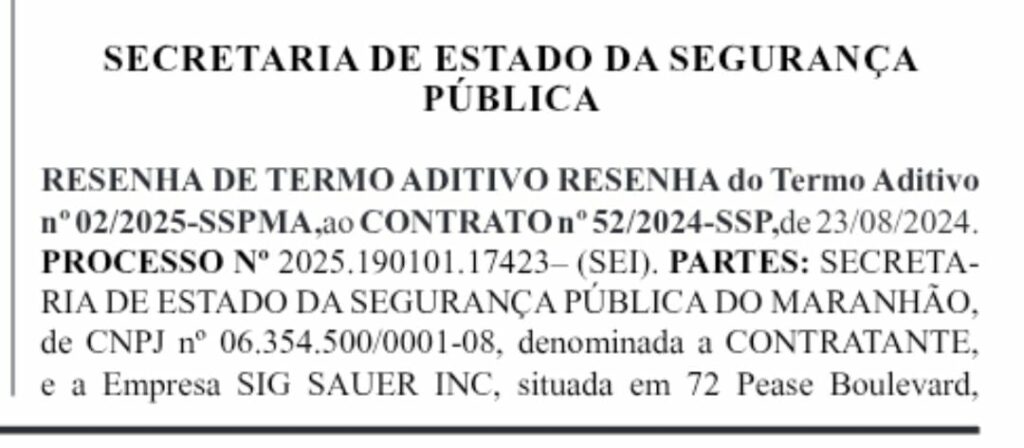 A princípio, o contrato firmado entre a SSP e a SIG SAUER prévia o fornecimento de carabinas 7.62×51 mm, mas a pasta da segurança pública resolveu promover uma alteração qualitativa no objeto contratual, substituindo o armamento por fuzis semiautomáticos. O preço inicial pago à empresa norte-americana era de R$ 122.876,40 (cento e vinte e dois mil, setecentos e setenta e seis reais e quarenta centavos). Com a mudança, definida por meio de aditivo, o valor provavelmente foi mudado. Porém, a resenha contratual a qual este blog teve acesso não contém informação sobre cifras.