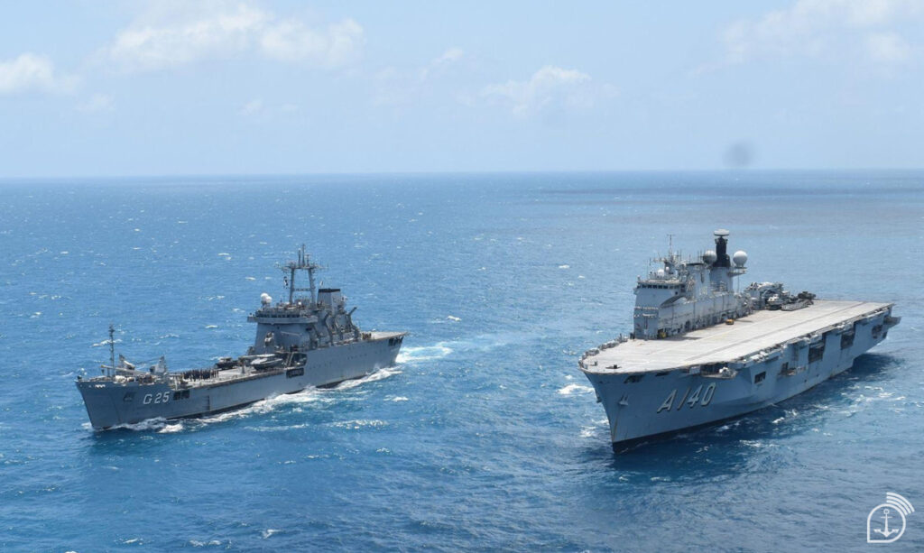 Após cumprir o desembarque de mais de 400 toneladas de material estratégico e 83 viaturas das três Forças, em Belém (PA), o NAM “Atlântico” prosseguiu na fase denominada “Ações Decisivas”, executando exercícios entre os meios navais e aeronavais.