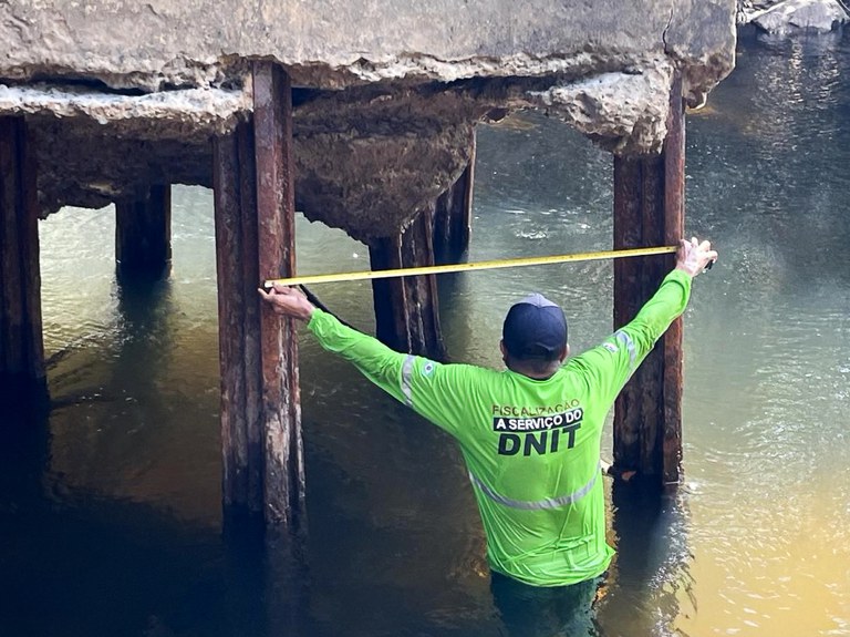 Técnico do DNIT faz medição em uma das pontes inspecionadas