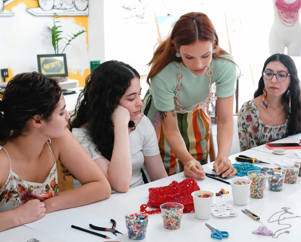 “A ideia surgiu com o pré Carnaval para incentivar o público a produzir seu próprio look. No Carnaval, as pessoas gostam de mostrar as produções elaboradas, às vezes desenvolvidas pelos próprios foliões ou adquiridas junto a empreendedores locais. As miçangas já são um produto consumido pelo público maranhense nos bordados dos bois, adereços infantis e também como elementos de moda. A união desses fatores com as infinitas possibilidades que o Carnaval permite nos motivou a oferecer o curso, conta Carol Calado, produtora e proprietária do Espaço Nafonte (Rua do Alecrim, Centro de São Luís).