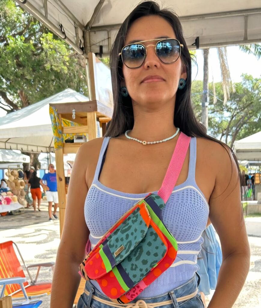 Já Liliane Diniz, do Ateliê Costuras Criativas da Lica, aposta em uma novidade: a Pochete Folia. O acessório, além de colorido, leve e funcional, ajuda a compor looks descolados e se converte em um item de segurança, perfeito para acomodar documentos, o celular, dinheiro e apetrechos de maquiagem. “Em cada festividade, focamos em itens diferenciados. A pochete, por exemplo, complementa o look ou a fantasia, com graça e beleza”, explicou a empreendedora.