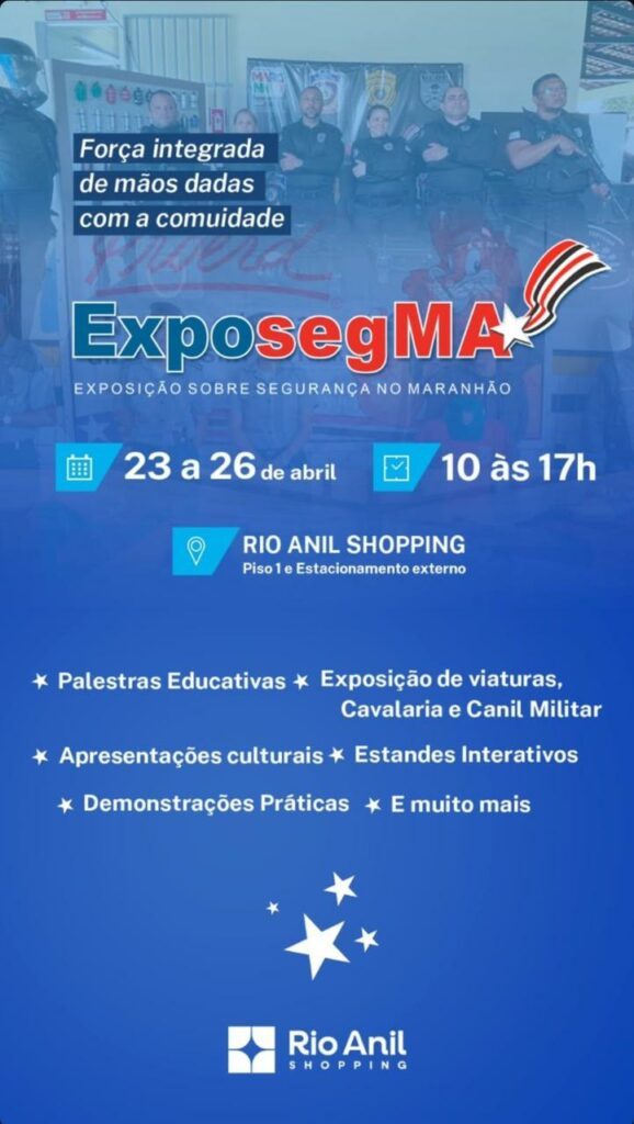 Pela primeira vez em São Luís, a Exposegma — Exposição sobre Segurança no Maranhão — ganha um formato inédito ao ocupar os corredores de um shopping center. Entre os dias 23 e 26 de abril, no Rio Anil Shopping, o evento propõe mais do que uma vitrine institucional: abre espaço para diálogo, conhecimento e aproximação entre a população e as forças de segurança que atuam diariamente no estado.