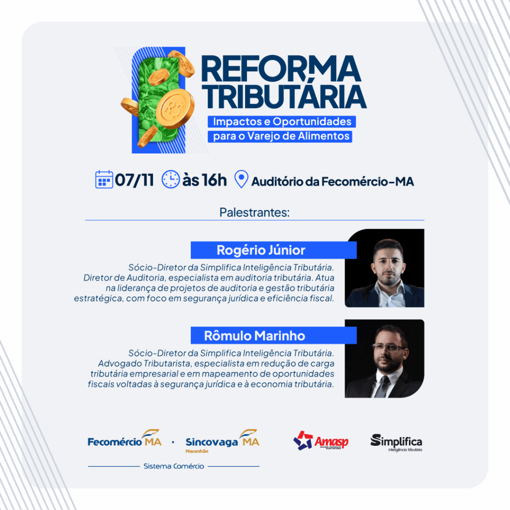 O evento é uma oportunidade para que o empresariado maranhense compreenda os efeitos diretos das mudanças sobre o varejo de alimentos e possa se preparar para o início da transição tributária.