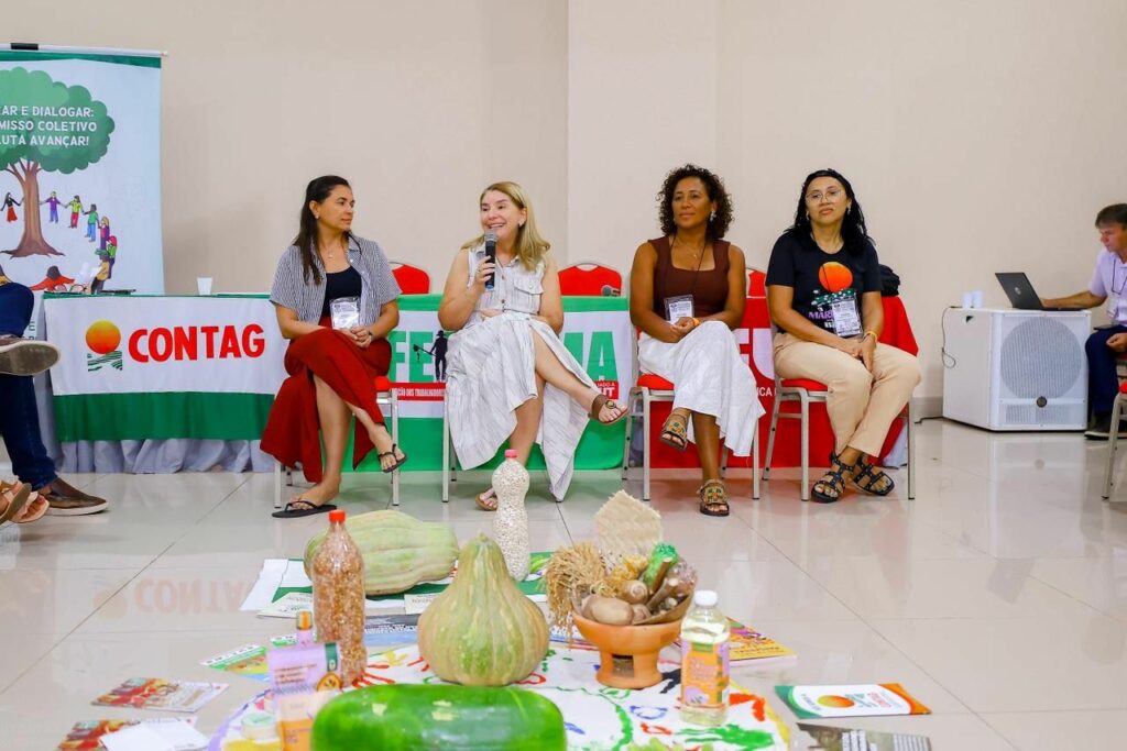 A mesa de diálogo foi coordenada pela presidenta da FETAEMA, Angela Silva, e contou com contribuições das diretoras da Federação, Nilvane dos Santos e Gersina Vieira Marques, além do secretário de Políticas Sociais da CONTAG, Erinaldo Lima.
