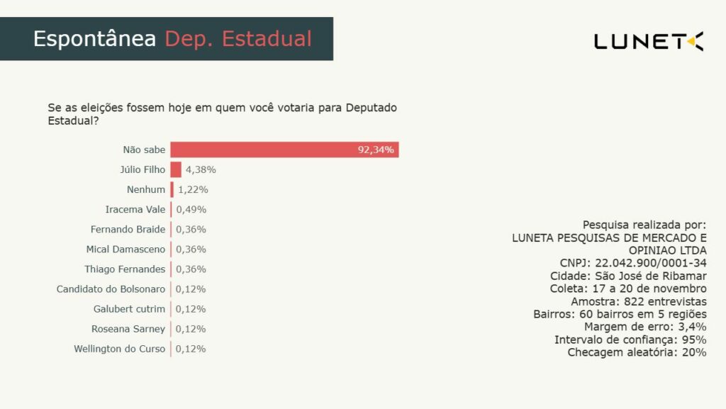A pesquisa também valida, de forma indireta mas poderosa, a hegemonia do grupo político liderado pelo prefeito Eduardo Braide em São José de Ribamar. A expressiva liderança de Júlio Filho, seu aliado e principal nome local para a assembleia, reflete a força da estrutura de governo municipal e a capacidade de mobilização do grupo.