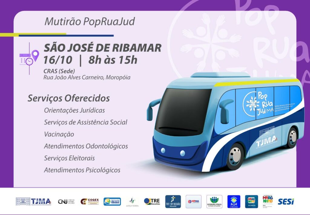 Nesta quinta-feira (16), São José de Ribamar será palco de uma importante ação de cidadania e inclusão social. A Prefeitura Municipal, em parceria com o Tribunal de Justiça do Maranhão (TJMA), realiza mais uma edição do mutirão PopRuaJud, que acontecerá no Centro de Referência de Assistência Social (CRAS), localizado na Rua João Alves Carneiro, no bairro Moropóia, das 8h às 15h.