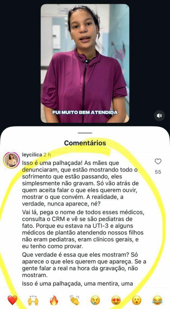 Em resposta à fala de Duarte Júnior, dezenas de pessoas comentaram relatando suas vivências e ressaltando a precariedade da situação do atendimento no Hospital da Criança.