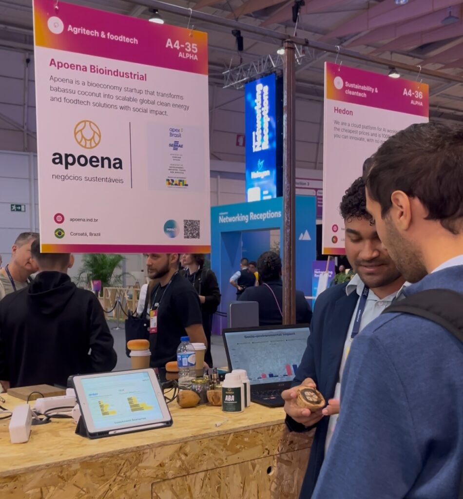 Já a Apoena Bioindustrial, startup instalada em Coroatá, que transforma o coco babaçu em insumos sustentáveis, levou soluções inovadoras, que unem tecnologia, tradição extrativista e impacto climático positivo. Tendo como base o aproveitamento do babaçu, a startup alia tecnologias inovadoras que ganham destaque crescente no mercado. A empresa desenvolveu um método que aproveita integralmente o fruto, ampliando suas aplicações e valorizando a atividade tradicional de catação do coco, mantida por séculos pelas comunidades agroextrativistas da região dos Cocais, no Maranhão.