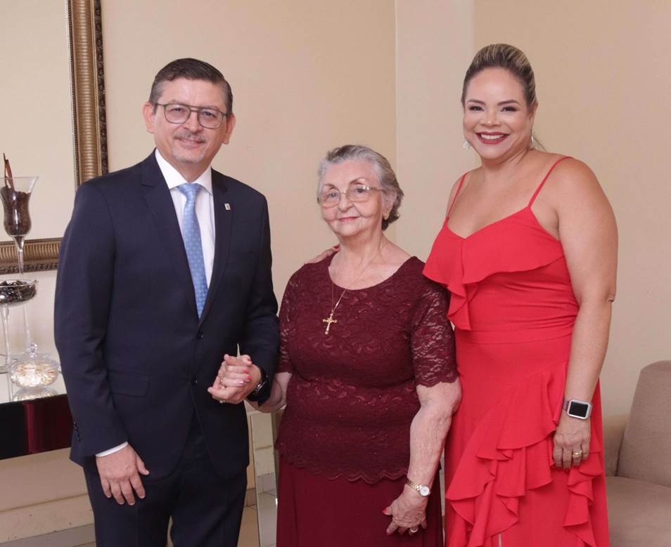 Dr. Mauro César com a esposa Simone, e a mãe, Clomar Oliveira, na solenidade de posse