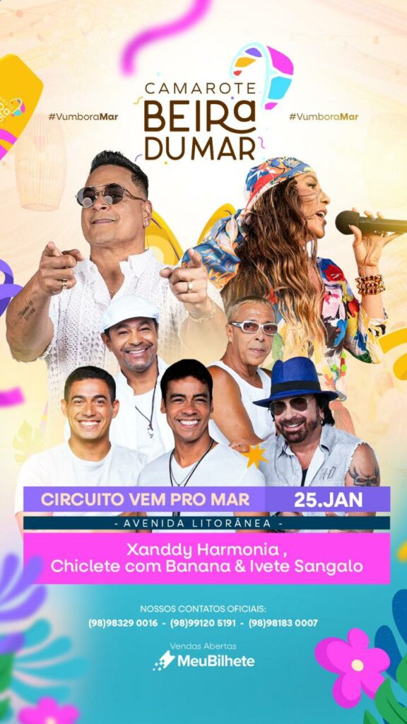 Os ingressos seguem à venda na Bilheteria Digital (site e aplicativo) e também nos pontos físicos, sem taxa, nas lojas Lu Brand (Holandeses e Fecomércio), Velú (Calhau, em frente ao IPEM) e Paz e Amor (Cohama).