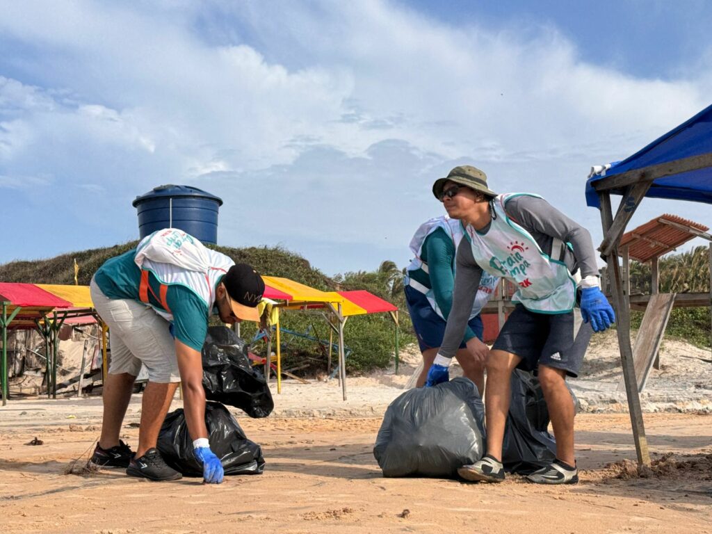 A mobilização ocorreu na Praia do Araçagy, em São José de Ribamar, onde os voluntários percorreram parte da faixa de areia recolhendo resíduos descartados irregularmente, como plástico, borracha, metal e outros materiais.